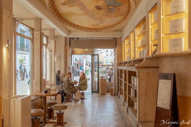 リスボン中心街にはレスタウラドーレス広場(Praça dos Restauradores)と、アウグスタ通り(Rua Augusta)にお店が。アズレージョタイルが美しい、広めのティールームがあるので休憩場所としても重宝します。(ナタ専門店は席数が少ないお店が多い)